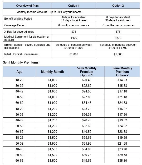 an income…when you are disabled due to a sickness or an accidental injury on or off the job.